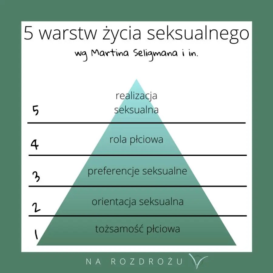 Warstwą na wyższym poziomie jest orientacja seksualna, czyli ukierunkowanie popędu seksualnego. Orientacja seksualna nie jest zero-jedynkową kategorią, ale raczej można przedstawić ją na kontinuum (skala Kinseya) , na którego jednym końcu znajduje się hetero- a na drugim homoseksualność. Między jednym a drugim biegunem tej osi znajdują się pośrednie orientacje, które w zależności od natężenia uczuć do jednej z płci zbliżają się do któregoś z tych dwóch biegunów. Orientacja seksualna nie jest kwestią wyboru człowieka i nie podlega leczeniu. W USA od 1989 homoseksualizm przestał być uznawany za zaburzenie seksualne –a w Europie od 1991 roku – kiedy Światowa Organizacja Zdrowia (WHO) usunęła to rozpoznanie z Międzynarodowej Klasyfikacji Chorób i Zaburzeń.